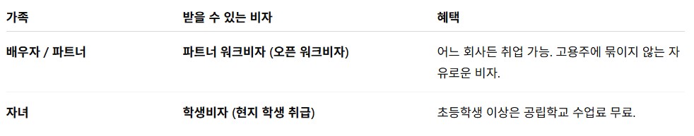 워크비자 취득자는 가족 비자 신청이 가능합니다.